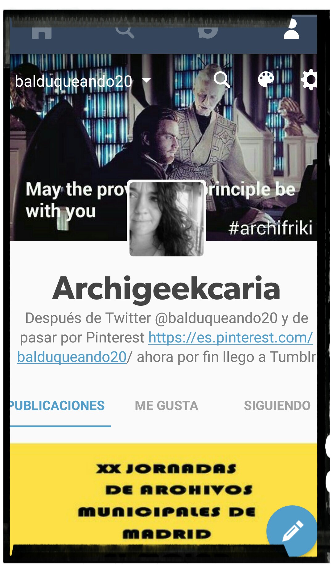 Después de Twitter y Pinterest (además de este blog que prometo revitalizar y actualizar más a menudo), he llegado a Tumblr. No sé si duraré mucho, si seré constante, pero de momento allí estoy.